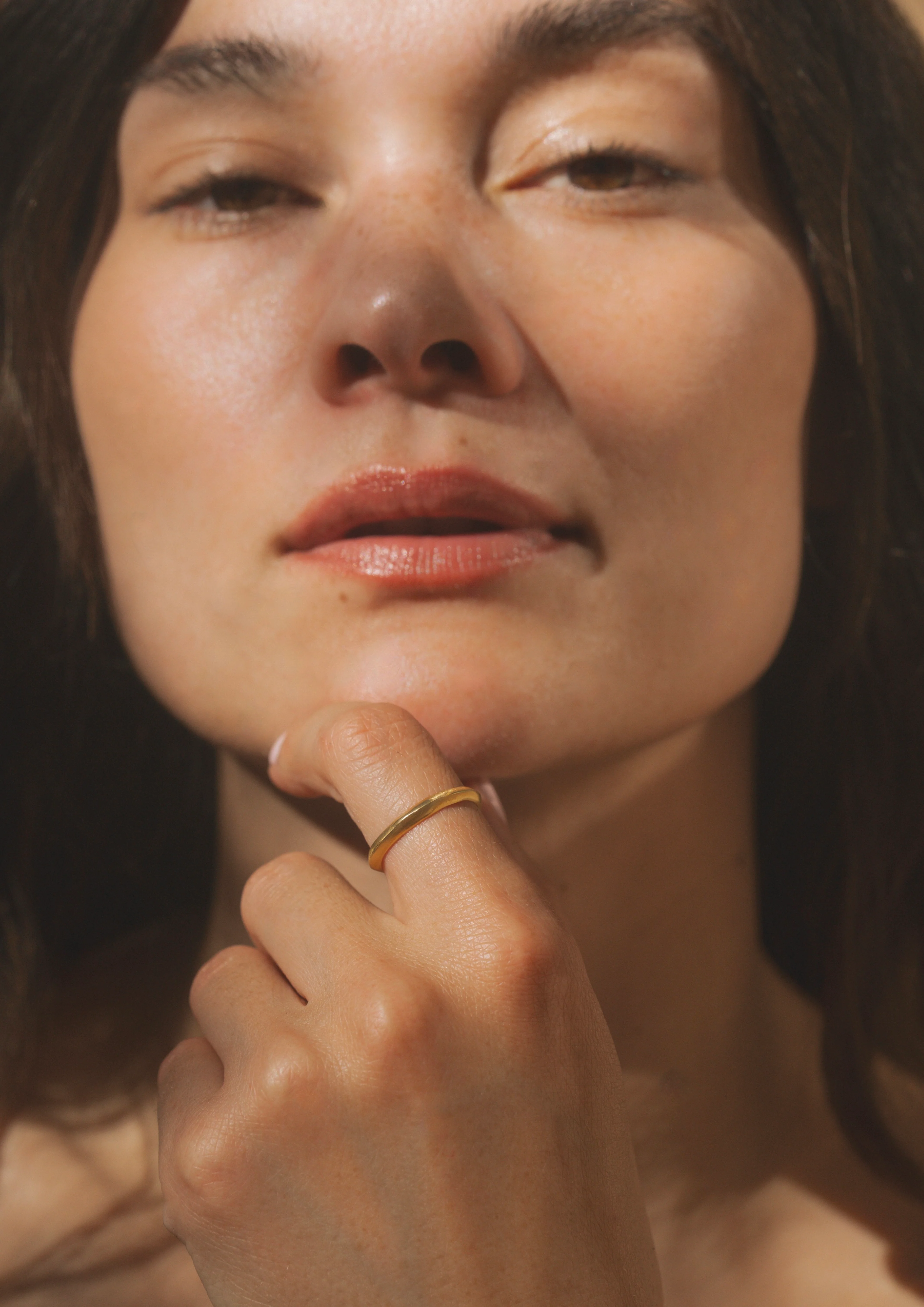 A simple stacking band with a soft knife-edge ridge and natural, organic texture. Smooth yet imperfect, it’s designed to feel both refined and earthy ~ a versatile everyday piece with subtle sculptural detail.