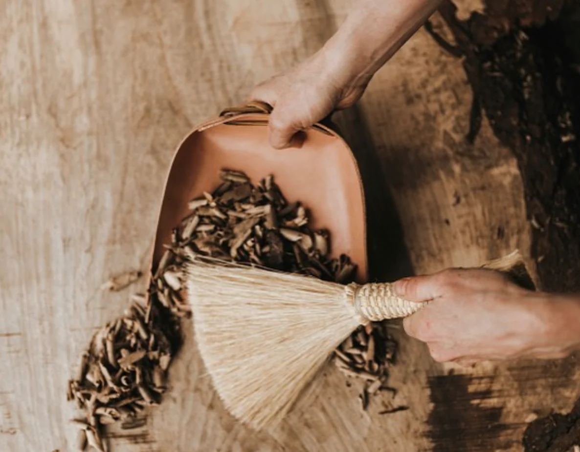 A perfect solution to the plastic dustpan! This sturdy leather dustpan designed and made in-house is a semi-rigid molded dustpan, perfectly shaped to clean up small messes. Available in natural veg-tanned leather, or a black achieved by a natural tannin reaction process done here in-house. These dustpans are made by a small craft house located in Berea, Kentucky that is passionate about sustainable sourcing and traditional craft techniques. Shipped in 100% recycled packaging.
