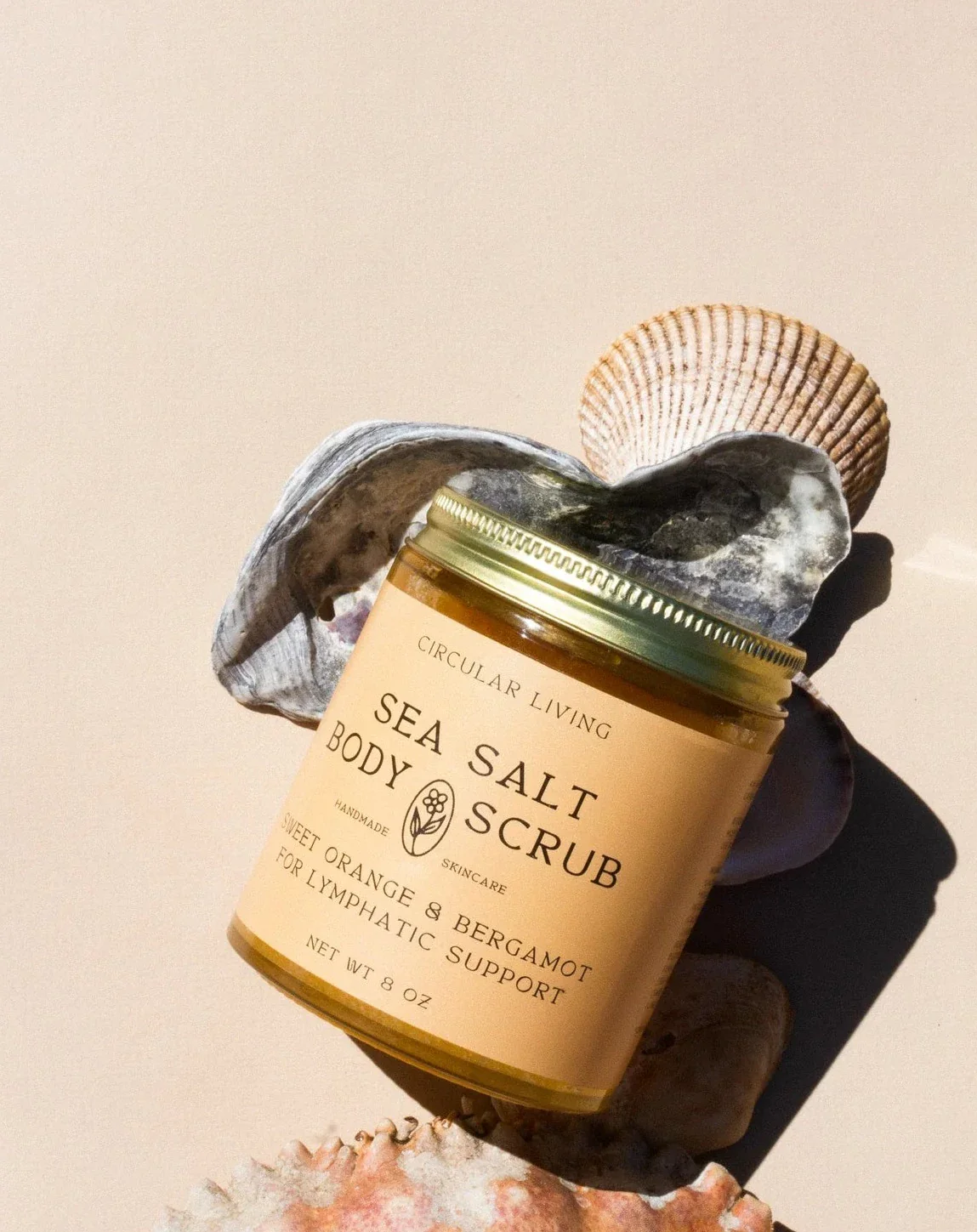 Sea salt softens the skin as sugar exfoliates. Sea buckthorn oil brightens, supports collagen production and skin moisture retention. Castor oil, calendula and citrus essential oils uplift and support lymphatic circulation.