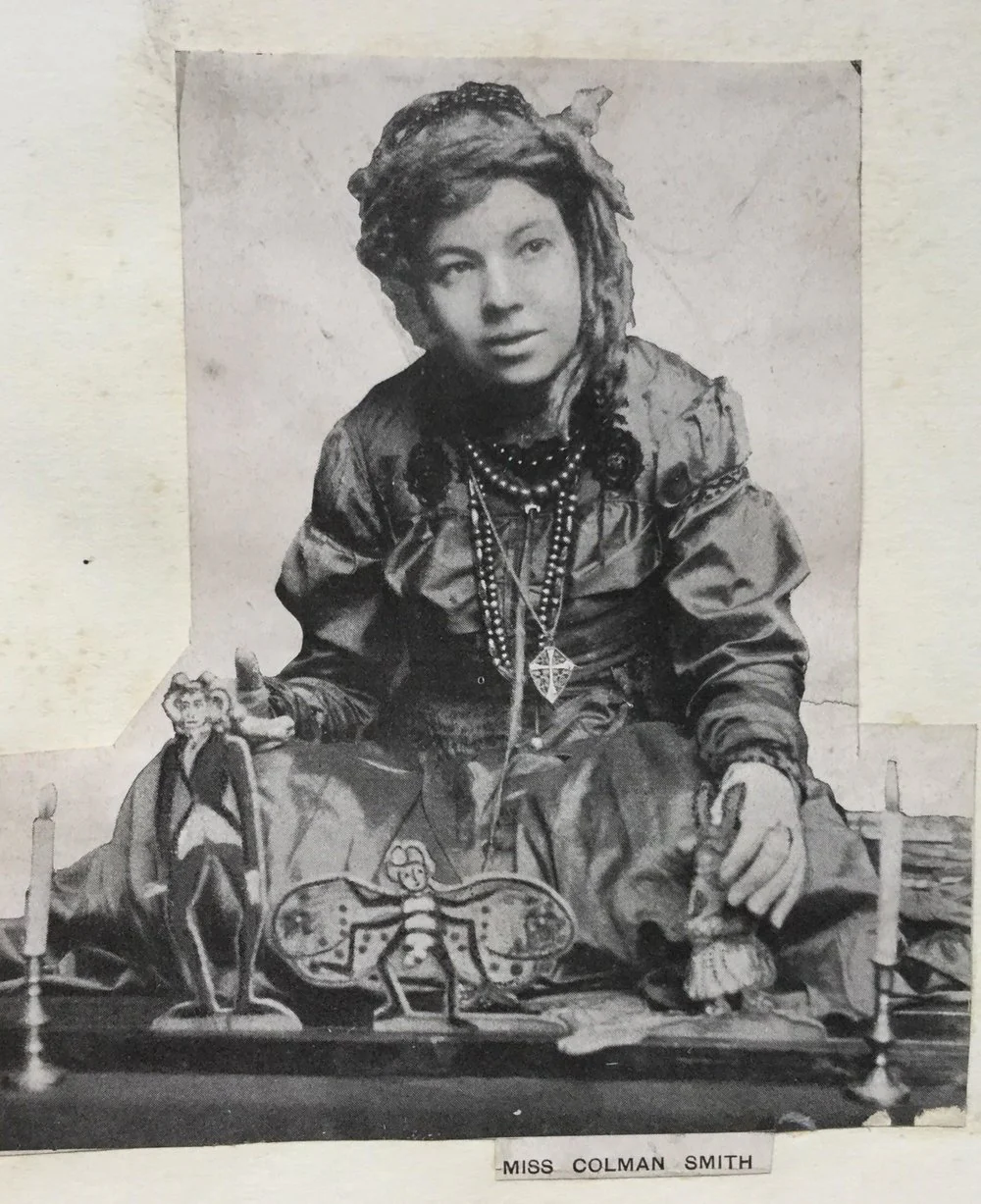 Pamela Colman Smith (Pixie) was a Renaissance woman, ahead of her time in many ways in varied roles of artist, occultist, poet, designer, suffragist, folklorist, editor, publisher, and miniature-theatre maker. Her mother was Jamaican, her father a white American. She was a folklorist who recited tales in a Jamaican dialect. As an artist, Pamela specialized in the art of synesthetic paintings that were based upon the visual images she saw in classical music. Throughout her life, Pamela was interested in mysticism and the occult. Her deep involvement with the Order of the Golden Dawn culminated in a commission from Arthur E. Waite to illustrate a tarot deck.